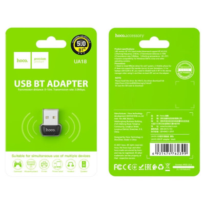 Hoco UA18 вигідно відрізняється високою якістю сигналу, мінімальними затримками звуку та відмінною стабільністю з’єднання. На відміну від багатьох бюджетних адаптерів, він не перегрівається під час тривалої роботи, зберігає стабільну швидкість передачі даних і підтримує новий стандарт Bluetooth Low Energy (BLE), що зменшує споживання енергії без втрати якості зв’язку.