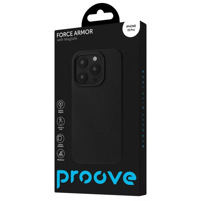 Proove Force Armor Case обеспечивает усиленную защиту от ударов, падений и царапин. Его конструкция состоит из двух слоев: внутреннего амортизирующего TPU и прочного внешнего поликарбонатного каркаса. Углы корпуса дополнительно укреплены воздушными подушками, которые смягчают удар при падении на твердую поверхность. Такая система делает чехол устойчивым даже при падении с высоты.