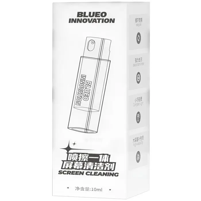 Чистящий спрей для очистки экрана Blueo (флакон 10 мл + микрофибра) — это надёжный и удобный аксессуар, который должен быть у каждого пользователя современной техники. Он сочетает компактность, безопасность и эффективность. Благодаря ему ваши гаджеты всегда будут выглядеть опрятно, а качество изображения будет оставаться максимально чётким.