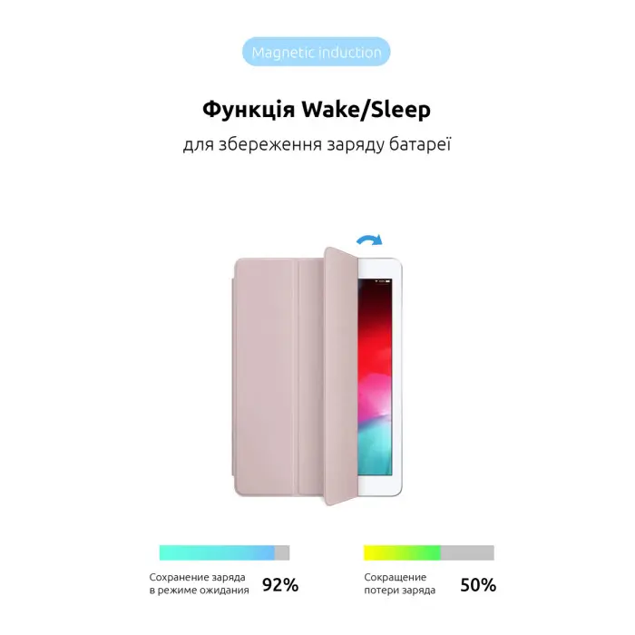 Функція Wake/Sleep, яка реалізована за допомогою магнітів, дає змогу неабияк продовжити використання планшета на одному заряді батареї завдяки зниженню використання екрана.