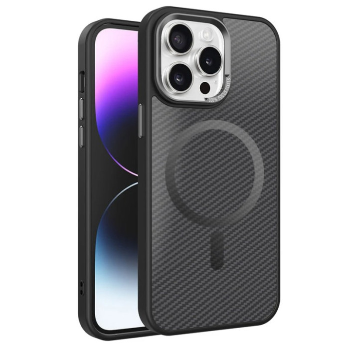 Carbon With MagSafe – це високоякісний тонкий чохол, що забезпечує елегантний захист вашого пристрою. Спеціальна технологія сплаву, що імітує карбон, надає чохлу стильного та сучасного вигляду. Дуже приємний на дотик, він забезпечує комфортне використання смартфона протягом усього дня. Вбудована технологія MagSafe гарантує надійне кріплення аксесуарів та бездротову зарядку. Цей чохол поєднує у собі витонченість та функціональність, ідеально підходячи для щоденного використання.