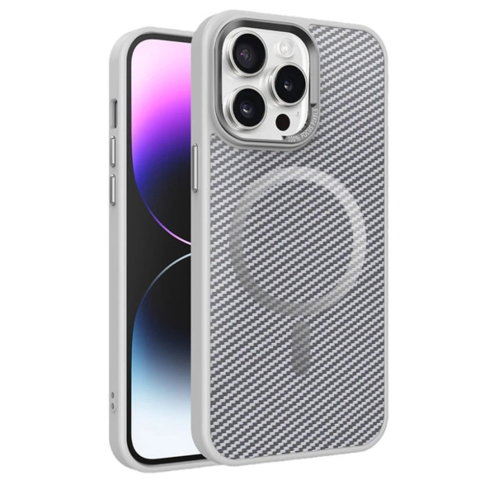 Carbon With MagSafe – це високоякісний тонкий чохол, що забезпечує елегантний захист вашого пристрою. Спеціальна технологія сплаву, що імітує карбон, надає чохлу стильного та сучасного вигляду. Дуже приємний на дотик, він забезпечує комфортне використання смартфона протягом усього дня. Вбудована технологія MagSafe гарантує надійне кріплення аксесуарів та бездротову зарядку. Цей чохол поєднує у собі витонченість та функціональність, ідеально підходячи для щоденного використання.