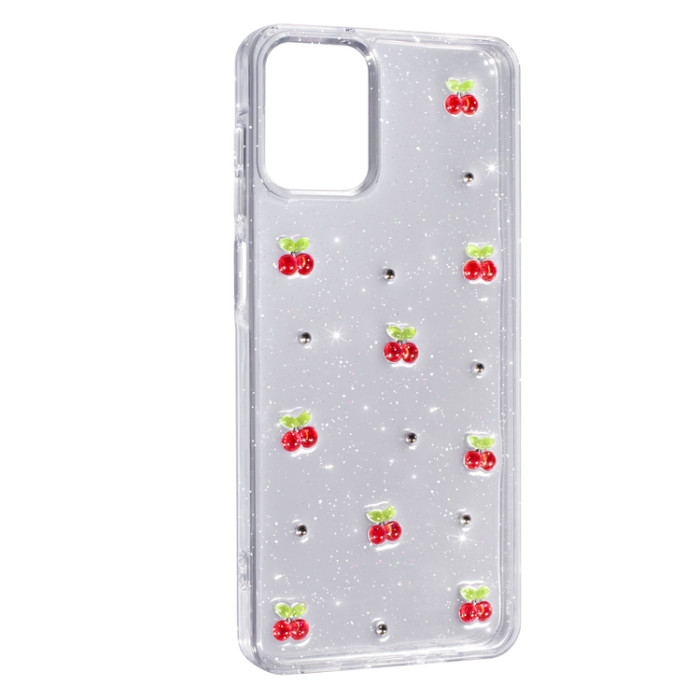 Основою чохла є прозорий еластичний корпус, який зберігає оригінальний колір смартфона, додаючи йому легкості та витонченості. Головна особливість серії Glue Case Hit — це об’ємні 3D-декорації у вигляді вишень, сердець, бантиків, метеликів, квітів та інших милих елементів, які надають аксесуару чарівного вигляду. Вони виготовлені з м’якого полімеру, приємного на дотик, і надійно закріплені на поверхні завдяки спеціальній технології термічного приклеювання.