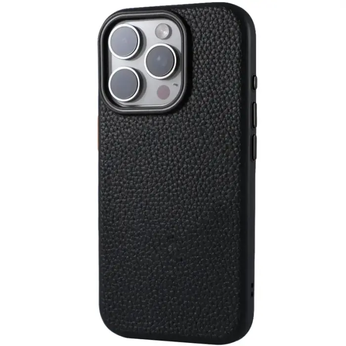 Модель виконана у стильному дизайні з текстурою під натуральну шкіру (grain texture), що надає аксесуару солідного вигляду. Завдяки вбудованій підтримці MagSafe чохол забезпечує надійне магнітне з’єднання з зарядними пристроями та аксесуарами, зберігаючи максимальну функціональність iPhone.