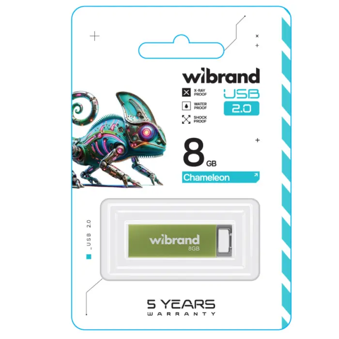 Флешка Wibrand Chameleon об\'ємом 8 ГБ з інтерфейсом USB 2.0 має елегантний чорний корпус, що додає ..