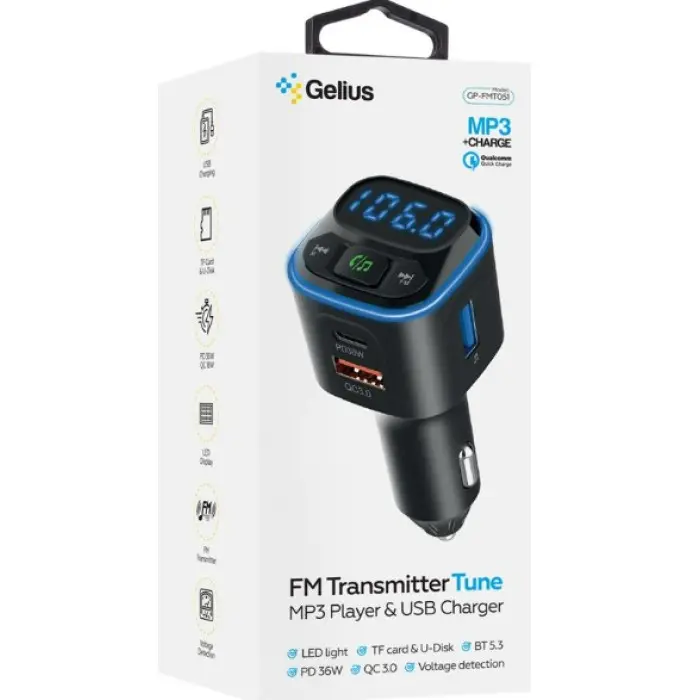 FM модулятор Gelius Tune GP-FMT051 (PD/QC) 36W Чёрный