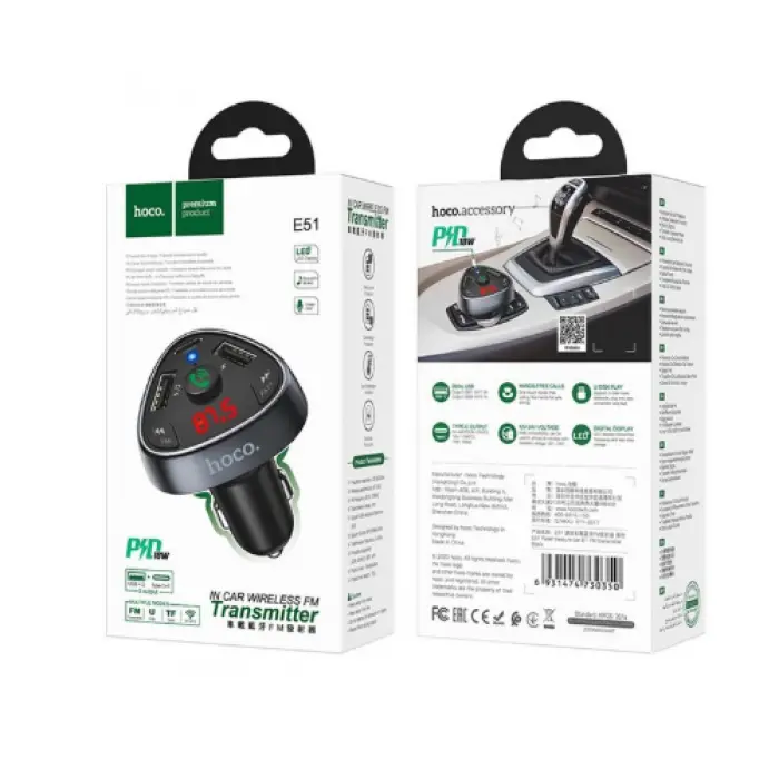 FM модулятор Hoco E51 2USB 3,1A Black, Чёрний
