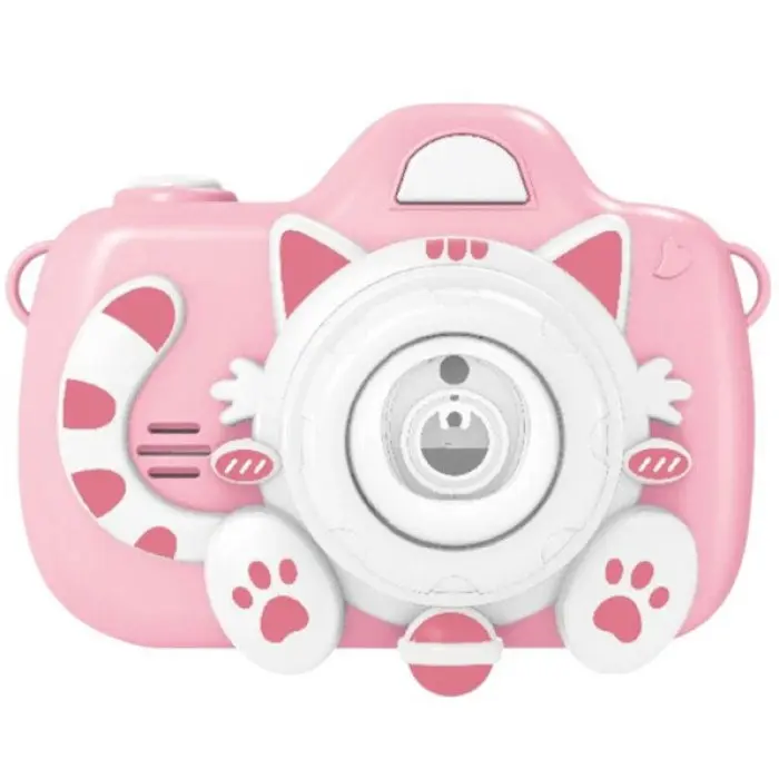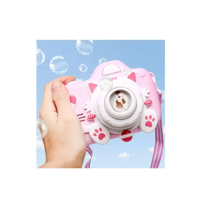 Невероятно милая игрушка в виде розовой фотокамеры с мордочкой котика – создана, чтобы доставлять радость детям. Нажмите кнопку – и перед объективом начинают образовываться сотни мыльных пузырей вместе с музыкой, светом и звуковым эффектом затвора.