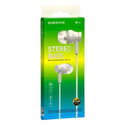 Borofone BM67 — це стильні та функціональні вакуумні навушники з мікрофоном, створені для щоденного використання з мобільними пристроями, ноутбуками та іншою технікою з 3,5 мм аудіороз’ємом.