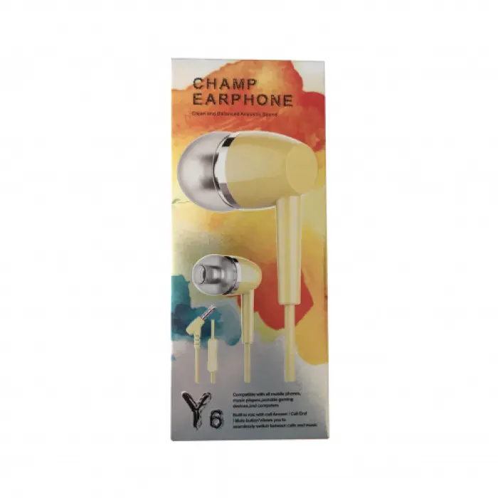 Вакуумні навушники Champ Y6 - відмінний вибір для тих, хто цінує високу якість звуку. Модель представлена з мікрофоном і функціональною кнопкою на одному з навушників. Комплектується стильною упаковкою і виконана в декількох класичних колірних рішеннях.