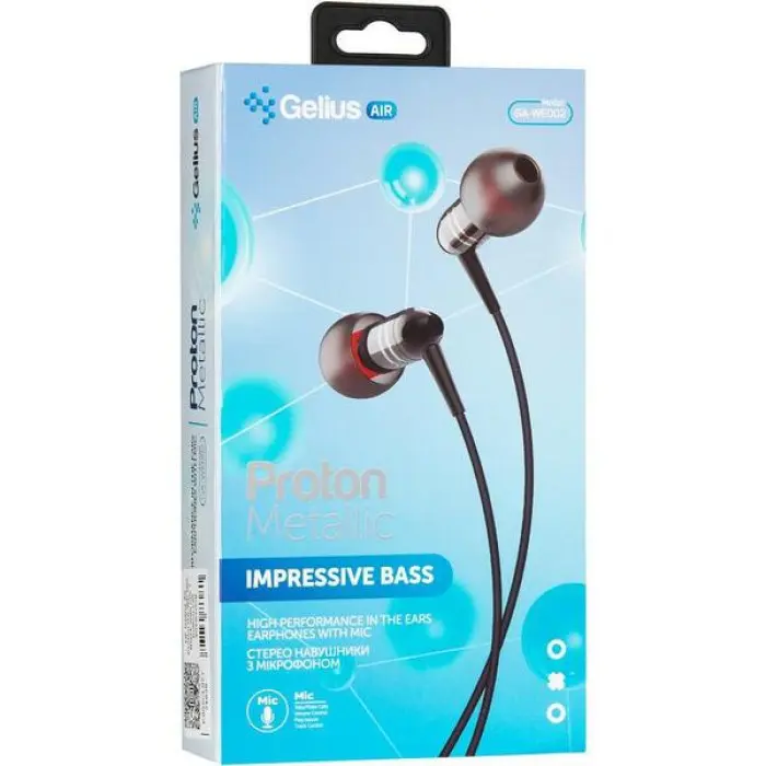 Провідні навушники Gelius Air Proton GA-WE-002 – це модель, яка наголошує на якості звуку. Відмінний бас і пасивна шумоізоляція дозволяють насолодитися гарною музикою, в них ви не чутимете зайвого шуму та перешкод. Вони ідеально підійдуть людям, які люблять слухати улюблені пісні та занурюватись у них повністю.