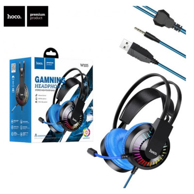 Накладні ігрові навушники-гарнітура з мікрофоном Hoco W105 Blue, Сині