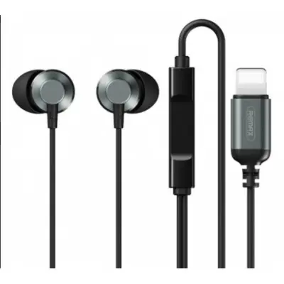 Провідні вакуумні навушники-гарнітура Remax RM-512 Lightning Metal Wired Earphone for Music & Call Grey, сірі
