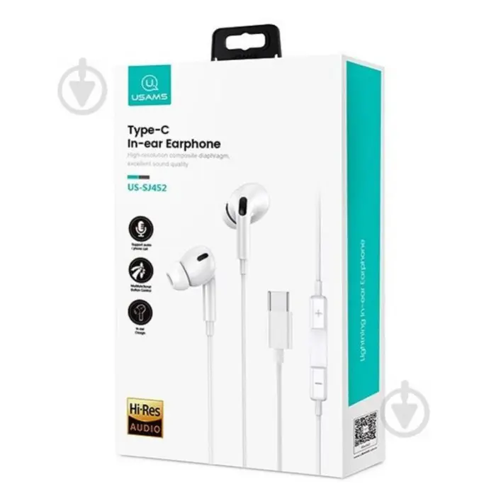HF Навушники Usams EP-41 Type-C — це проводні вакуумні навушники-вкладиші, розроблені для пристроїв з роз\'ємом USB Type-C. Вони поєднують стильний дизайн, зручність використання та функціональність, що робить їх ідеальним вибором для щоденного прослуховування музики, перегляду відео та спілкування.