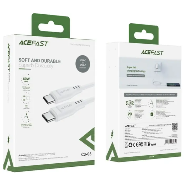 Кабель ACEFAST C3-03 Type-C to Type-C 1.2м Белый