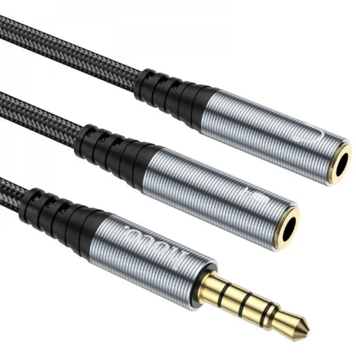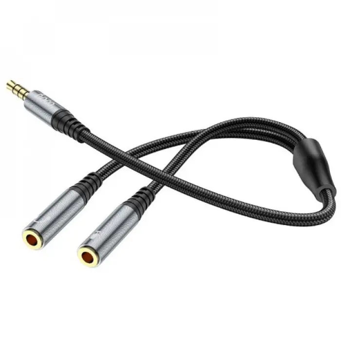 Переходник (кабель) AUX Hoco UPA21 0.25м 2in1 в темно-сером цвете – это удобное решение для тех, кто хочет сохранить функциональность аудио и зарядки своих устройств одновременно, не жертвуя качеством звука.