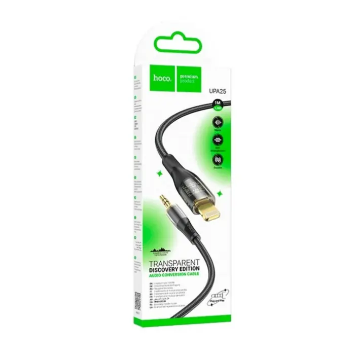 HOCO UPA25 Transparent Discovery Edition Digital Audio Conversion Cable iP Black – это высококачественный аудиокабель, предназначенный для подключения устройств с разъемом 3.5 мм к устройствам с разъемом Lightning. Этот кабель обеспечивает качественный звуковой сигнал при передаче аудио и обеспечивает удобное соединение между устройствами.