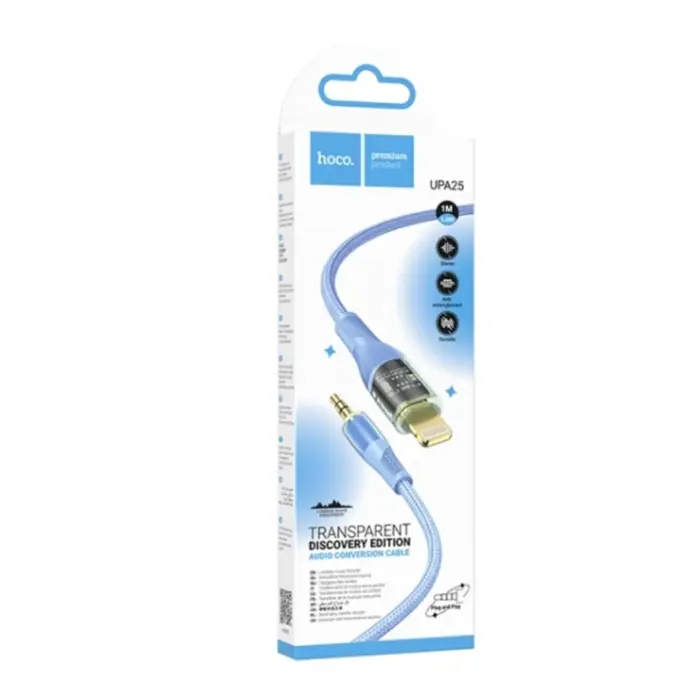 Кабель AUX Hoco UPA25 1м Синий (3.5 male to Lightning)