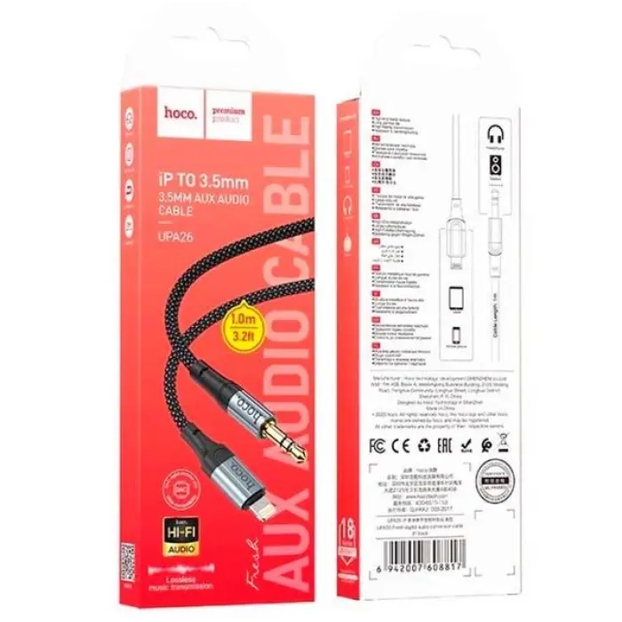 Кабель Hoco UPA26 AUX Lightning to Jack 3.5 1М Черный – это профессиональный аудиокабель, разработанный для обеспечения удобного подключения смартфонов, планшетов, аудиоплееров и других аудиоустройств к портативным, домашним или автомобильным акустическим системам. Этот кабель обладает прозрачным дизайном и поддерживает разъемы 3.5 мм и Lightning. Он обеспечивает преобразование цифровых данных в аналоговый формат для улучшения качества аудиосигнала. Благодаря высокой стойкости и большой пропускной способности, этот кабель идеально подходит для различных сценариев использования. Его длина составляет 1 метр, что обеспечивает достаточно простора для удобного подключения к разным устройствам, таким как смартфоны, планшеты и портативные аудиоустройства.