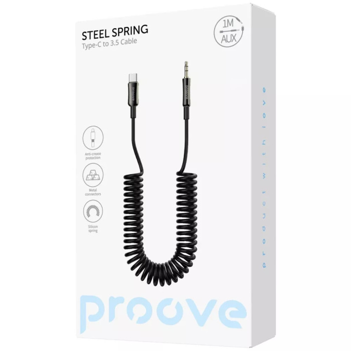 Кабель AUX Proove Steel Spring 1м Чорний (3.5 male to Type-C)