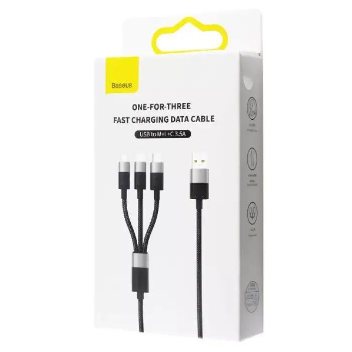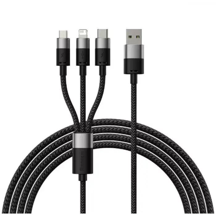 Основные характеристики:- длина 1,2м;– мощность 3,5 А;- Micro, Type-C, Lightning порты;– зарядка одн..