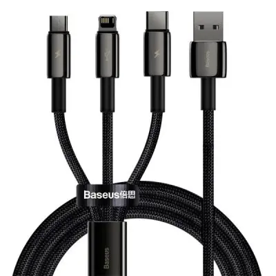 Кабель дата Baseus Tungsten Gold 3in1 1.5м Чорный