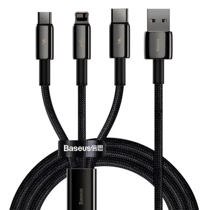 Особенности кабеля Baseus Tungsten Gold 3-in-1 USB to Lightning + Micro + Type-C (3.5A, 1.5m) CAMLTWJ-01: