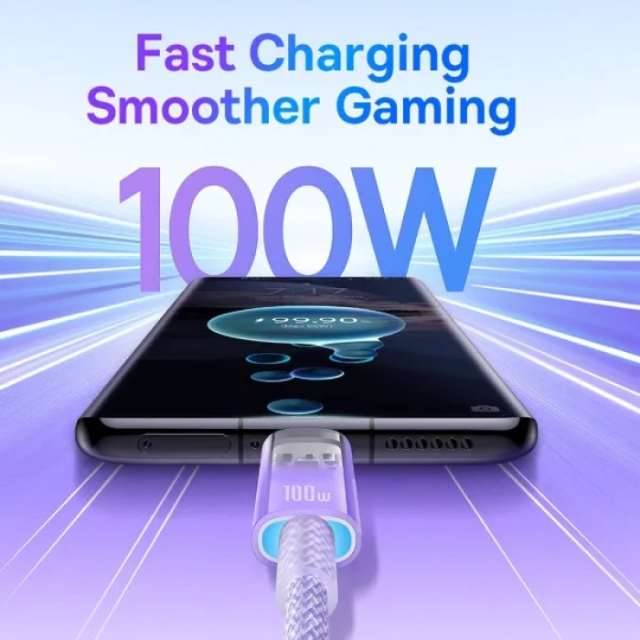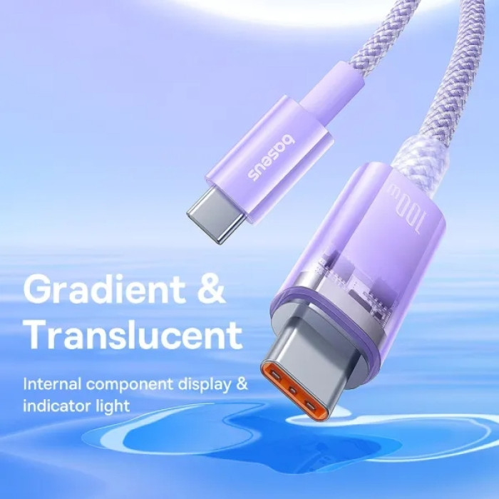 Кабель Baseus Explorer Type-C to Type-C 100W 1 м фиолетовый — это мощный аксессуар, который сочетает в себе скорость, надежность и современный стиль для ваших ежедневных задач.