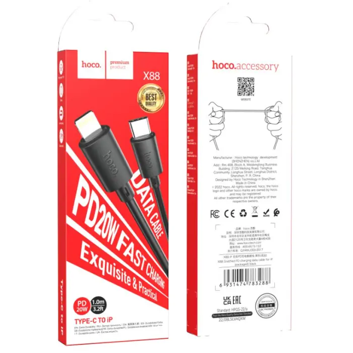 Кабель дата Hoco X88 Type-C to Lightning 1м Чёрный