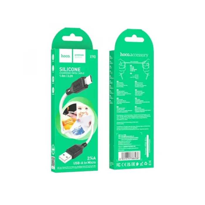 HOCO X90 Cool silicone charging data cable for Micro White — кабель для подзарядки аккумулятора, передачи данных и синхронизации мобильных устройств с разъемом Micro. Многослойная конструкция кабеля с оплеткой из силикона и алюминиевые наконечники обеспечивают устойчивость к разрывам и растяжениям и гарантируют надежную работу аксессуара в течение длительного периода времени.