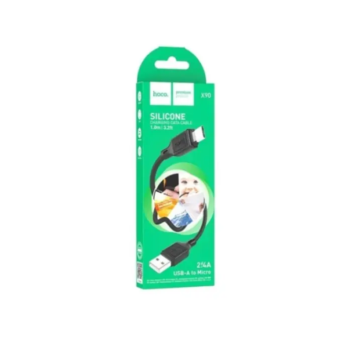 HOCO X90 Cool silicone charging data cable for Micro White — кабель для подзарядки аккумулятора, передачи данных и синхронизации мобильных устройств с разъемом Micro. Многослойная конструкция кабеля с оплеткой из силикона и алюминиевые наконечники обеспечивают устойчивость к разрывам и растяжениям и гарантируют надежную работу аксессуара в течение длительного периода времени.