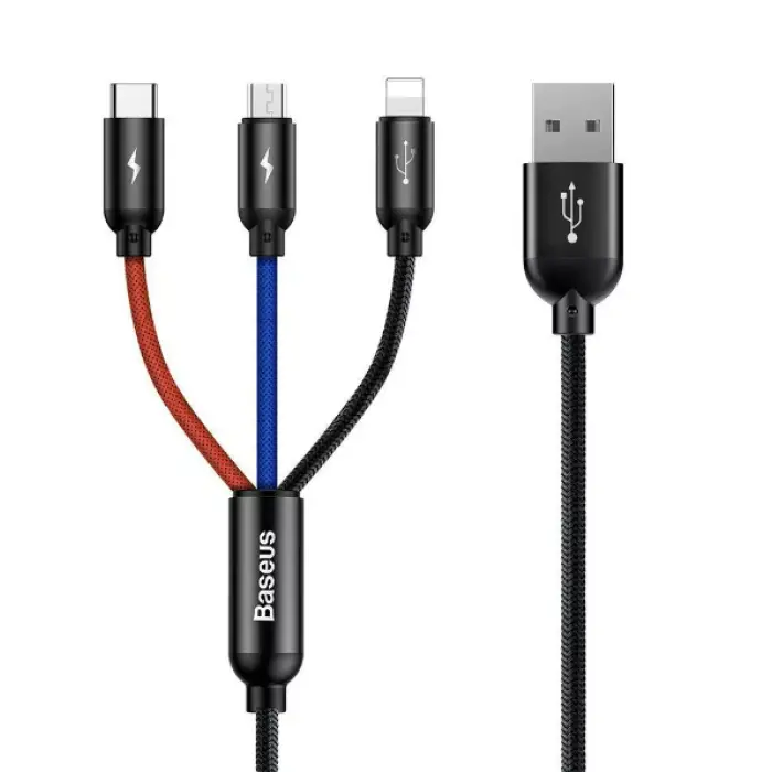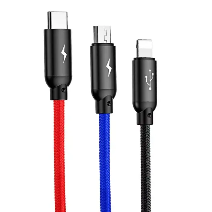 Baseus Three Primary Colors 3-in-1 – кабель для зарядки и передачи данных с мультиинтерфейсом.