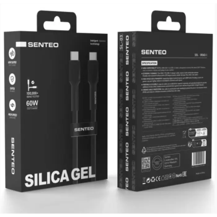 Кабель дата Senteo SL-03 Soft Silicone 60W Type-C to Type-C 1м Черный