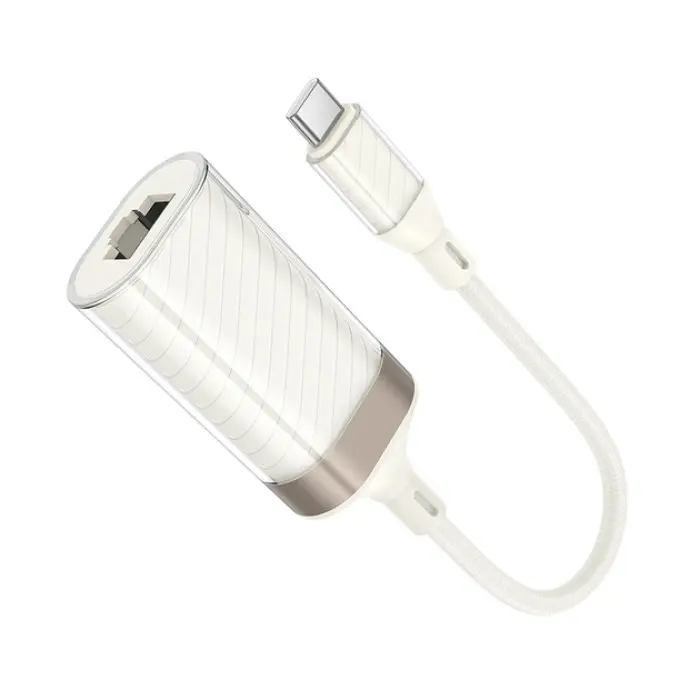 Hoco UA41B Type-C Ethernet Adapter Абрикосовий — це стильний, компактний і надійний мережевий адаптер, що забезпечує стабільне підключення до інтернету через дротову мережу Ethernet. Його сучасний дизайн, простота використання і висока якість матеріалів роблять його чудовим вибором для тих, хто цінує стабільність і швидкість підключення.