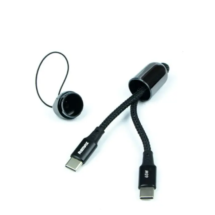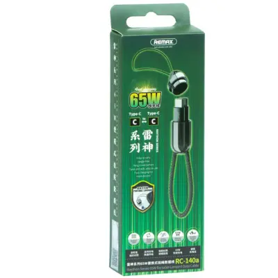 Кабель USB Remax RC-140a Raython series 65W – сучасний аксесуар для швидкого заряджання смартфонів, планшетів, ноутбуків, що підтримує високошвидкісну передачу даних, що робить його універсальним рішенням для більшості сучасних пристроїв. Практична реалізація аксесуара забезпечить користувачеві максимальний комфорт при її використанні і зі звичайними адаптерами, і з повербанками, надасть можливість з повною зручністю брати її куди завгодно. Модель складається з розбірної капсули з коротким шнурком для його фіксації, наприклад, на рюкзаку, в якій розташовуються конектори кабелю, при цьому його решта знаходиться з зовні. Аксесуар виготовлений з використанням ABS пластику, алюмінієвого сплаву та термопластичного каучуку, з яких виконані капсула, корпуси роз'ємів, плетене зовнішнє обплетення та захист місць з'єднань кабелю з роз'ємами. Модель здатна витримати потужність 65Вт, має потовщений мідний осердя і оснащена інтелектуальними мікросхемами, що контролюють процес зарядки. Встановлення з'єднання між пристроями здійснюється через Type-C – Type-C.