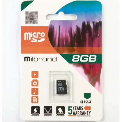 Карта памяти microSDHC Mibrand 8Gb class 4 – это универсальный носитель цифровой информации совместимый со всеми распространенными устройствами чтения и записи карт памяти стандарта microSDHC.