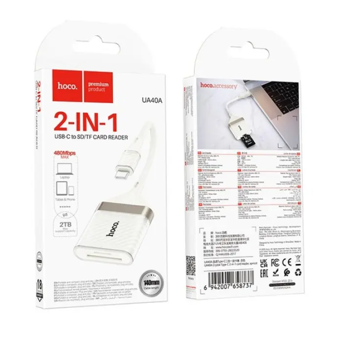 Підсумовуючи, картрідер Hoco UA40A 2in1 Type-C Сірий Абрикосовий — це стильний, потужний і багатофункціональний пристрій, який підходить для широкого кола користувачів. Він ідеально підходить тим, хто працює з картками пам’яті microSD, часто переносить дані, використовує відеореєстратори, екшн-камери, камери спостереження чи знімає багато фото та відео. Завдяки двом типам роз’ємів, компактності, міцному корпусу та високій продуктивності, Hoco UA40A стане незамінним помічником у будь-якій ситуації — вдома, на роботі, у подорожі або під час професійної діяльності.