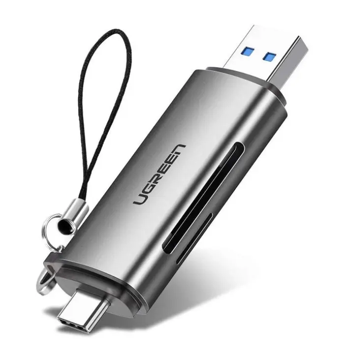 Устройство для чтения карт памяти UGREEN CM185 имеет алюминиевый корпус, хорошо отводящий тепло. Прикрепленный защитный колпачок защищает оба разъема от нежелательного загрязнения и пыли. Удобный провод брелка на кардридер обеспечивает защиту от потери.