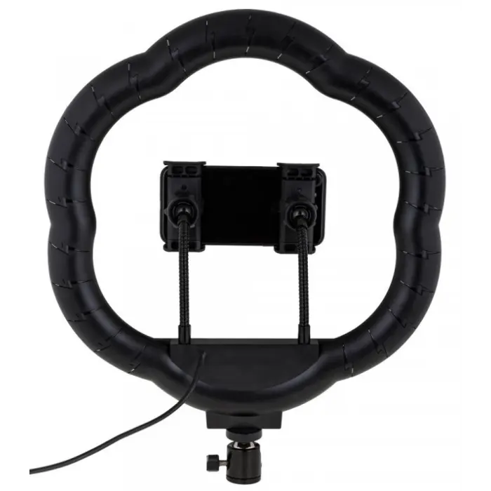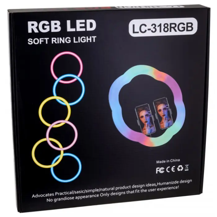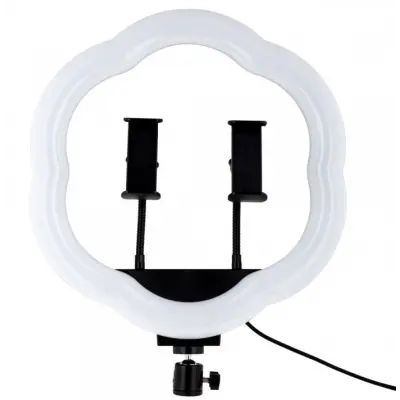 Лампа RGB LC-318(Flower Type) 36 cm – це доступне для кожного професійне освітлення для фото та відео зйомки, додаткового освітлення. Пристрій реалізовано в оригінальній формі, виконаній за типом квітки із зовнішнім диметром 33 см. Модель здатна працювати в більш ніж 10 режимах, наприклад, світити різними кольорами окремо, кольоровими градієнтами і сегментами, що переливаються по колу. Корпус аксесуара виготовлений із міцного пластику, має надійне складання. Зручний пульт допоможе увімкнути лампу, легко вибрати необхідний режим та змінити яскравість. Конструкцією пристрою передбачена можливість кріплення камер або, що входять в комплект, тримачів для смартфона, при цьому шарнірний механізм дозволить регулювати поворот гаджета, що утримується, на потрібний кут. До мережі лампа підключається за допомогою надійного кабелю з USB-роз\'ємом.