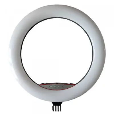 Лампа RGB MJ45 45cm – аксесуар великого діаметру, який вирізняється високою якістю та вражає своєю функціональністю. Даний пристрій може використовуватися як додаткове джерело світла, допоможе організувати професійне освітлення при зйомці фото та відео у фотостудії та будинку, при нанесенні макіяжу та догляду за нігтями. Аксесуар виготовлений з міцного пластику, виконаний у формі кільця з діаметром 45 см, що в поєднанні з тримачами для смартфону, що входять до комплекту, допоможе створити приголомшливі фото-знімки і відео-ролики без будь-яких тіней і з ідеально розсіюється світлом. Лампа здатна працювати більш ніж у 10 різних режимах, наприклад, світити різними кольорами окремо, декількома сегментами, що переливаються по колу, або градієнтом, одним рухомим сегментом по колу. Також пристрій комплектується адаптером із вбудованим кабелем, пультом.