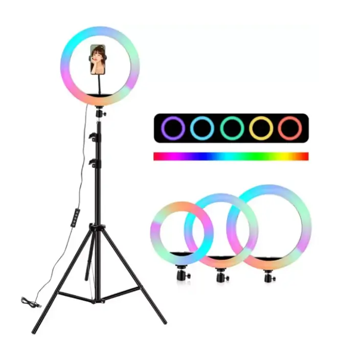 З різнокольоровою кільцевою лампою для фото Ви можете налаштовувати інтенсивність світлового потоку,..