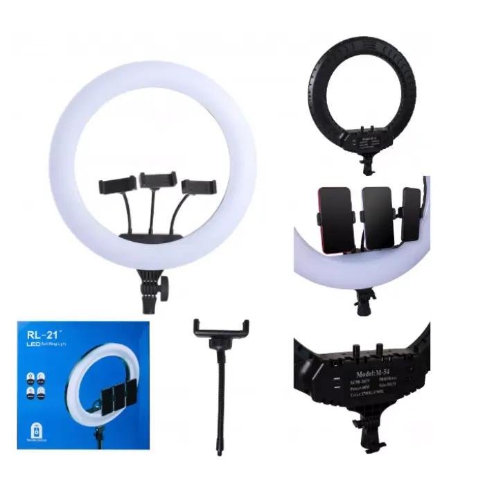 Кільцева лампа LED (54 см) RL-21 – це професійний освітлювальний прилад, ідеальний для створення якісного контенту, фотографій, відео та стрімів. Завдяки діаметру 54 см і LED-лампам, вона забезпечує рівномірне освітлення без тіней, що ідеально підходить для макіяжу, блогінгу та студійної зйомки.
