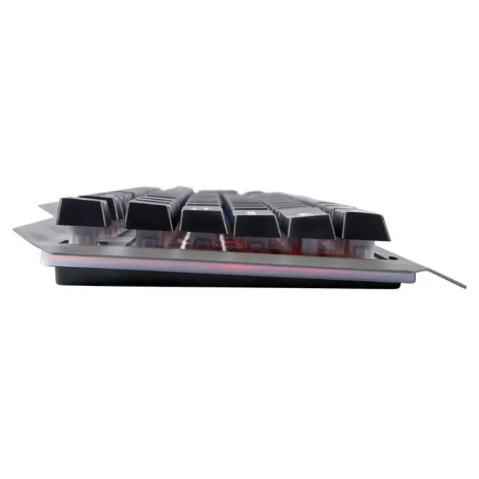 Игровая клавиатура TWolf T16 – это современное, надежное устройство, которое удовлетворит потребности как начинающих, так и опытных геймеров. Модель привлекает внимание технологичным дизайном с практичными, функциональными деталями и градиентной RGB LED подсветкой. Она лаконично дополнит как игровое, так и рабочее пространство. Корпус клавиатуры качественно собран, защищен от воды и пыли, что гарантирует защиту внутренних электронных компонентов и длительный срок службы. Ее верхняя панель изготовлена из металла, дополнена декоративной перфорацией на изогнутых краях и вырезом с защитной рамкой для удобной установки смартфона в вертикальном положении. На ее нижней пластиковой панели расположены складные подставки и противоскользящие накладки. Ее кейкапы выполнены в удобной форме и приподняты над верхней панелью, что в сочетании с красочной подсветкой создает плавающий визуальный эффект. Символы на них нанесены методом лазерной гравировки, поэтому не стираются впоследствии и отчетливо видны. Все 104 клавиши клавиатуры выделяются увеличенным ресурсом работы, нажимаются с механическим чувством и тактильной обратной связью. Быстрый отзыв и поддержка технологии Anti-ghosting (Multi Keys) сделают игровой процесс более эффективным, помогут молниеносно выполнять даже самые сложные комбинации. Клавиатура оснащена встроенным кабелем с разъемом USB для подключения к компьютеру или любому другому совместимому устройству. Длина кабеля составляет 1.3 метра.