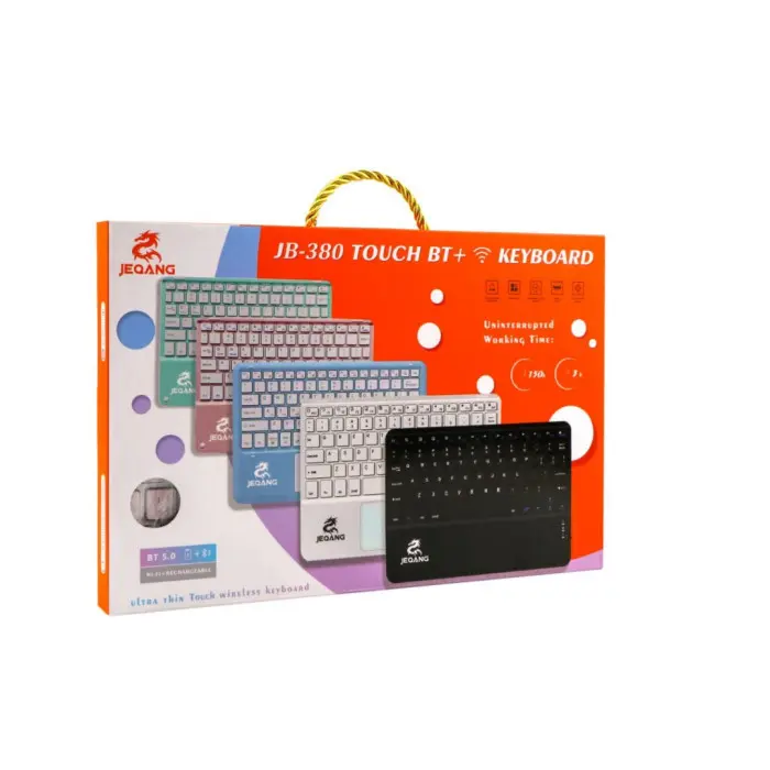 Клавиатура беспроводная JEQANG JB-380 — это уникальный аксессуар, который лаконично сочетает в себе функции сразу двух устройств. Небольшие размеры, универсальность и широкая функциональность делают её отличным выбором для повседневной эксплуатации в любых условиях: дома, в офисе или во время поездок.