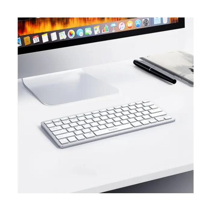 Бездротова клавіатура HOCO GM32 представлена в тонкому оригінальному дизайні. Модель компактна, але має всі необхідні клавіші. Хід клавіш м’який, тому друкувати буде доволі приємно та комфортно. Підключення клавіатури до комп’ютера відбувається за допомогою Bluetooth 5.0. Також її можна використовувати як звичайну USB-клавіатуру. Діапазон бездротового зв’язку — 10 метрів. Клавіатура оснащена акумулятором ємністю 180 mAh. Цього вистачить на 50 годин роботи. Заряджається клавіатура впродовж 3–4 годин. HOCO GM32 можна просто підключити й одразу ж працювати. Модель не вимагає встановлення додаткового програмного забезпечення.