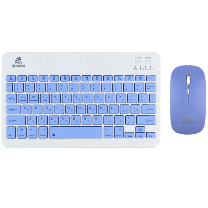 Бездротовий комплект Jeqang JB-350, що складається з клавіатури та миші, є ідеальним рішенням для тих, хто шукає надійний та стильний аксесуар для свого робочого простору. Цей комплект в яскравому фіолетовому кольорі додає елегантності та виразності вашому робочому місцю, забезпечуючи при цьому комфорт і зручність у роботі.