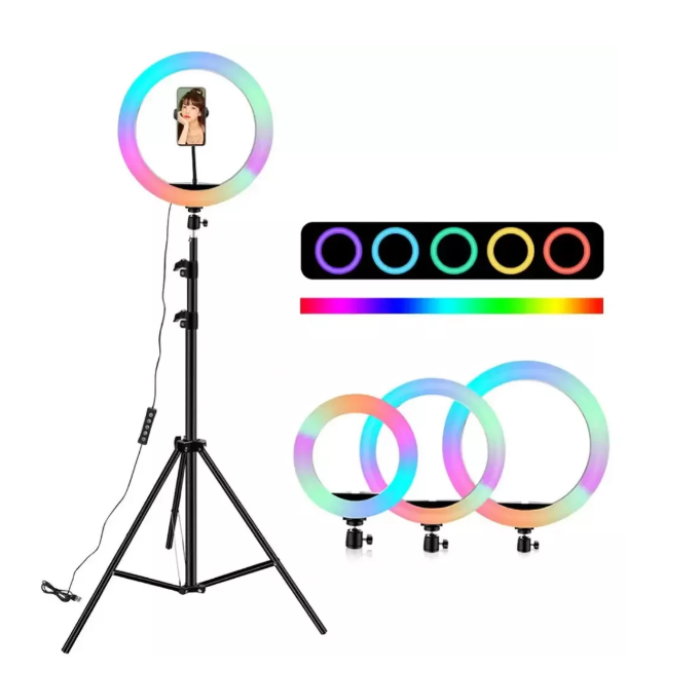 Лампа RGB MJ36 36cm сочетает доступную цену и надежную реализацию осветительного устройства. Модель может использоваться в качестве дополнительного источника света, поможет организовать профессиональное освещение при съемке фото и видео в фотостудии и дома, при нанесении макияжа и уходе за ногтями. Аксессуар изготовлен из прочного пластика, выполнен в форме кольца с диаметром 36 см, что в сочетании с, входящими в комплект, держателями для смартфона поможет создать потрясающие фото-снимки и видео-ролики без каких-либо теней и с идеально рассеивающимся светом. Лампа способна работать более чем в 10 различных режимах, например, светить различными цветами по отдельности, несколькими переливающимся по кругу сегментами или градиентом, одним движущимся сегментом по кругу. Модель оснащена встроенным кабелем, имеющим разъем USB для подключения к сети и пульт для управления яркостью и переключения между режимами.