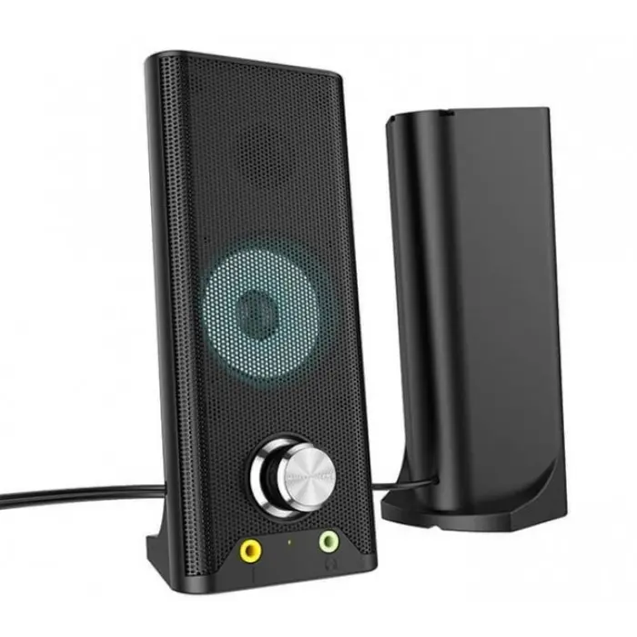 Акустика для ПК HOCO DS32 хорошо подходит для озвучивания фильмов, музыки и звукового сопровождения в компьютерных играх. Встроенные высококачественные динамики позволяют детально и реалистично воспроизводить высокие частоты. Подключается к компьютеру или ноутбуку через разъем AUX-3.5мм/ питание подсветки через разъем USB. Питание осуществляется через USB кабель.