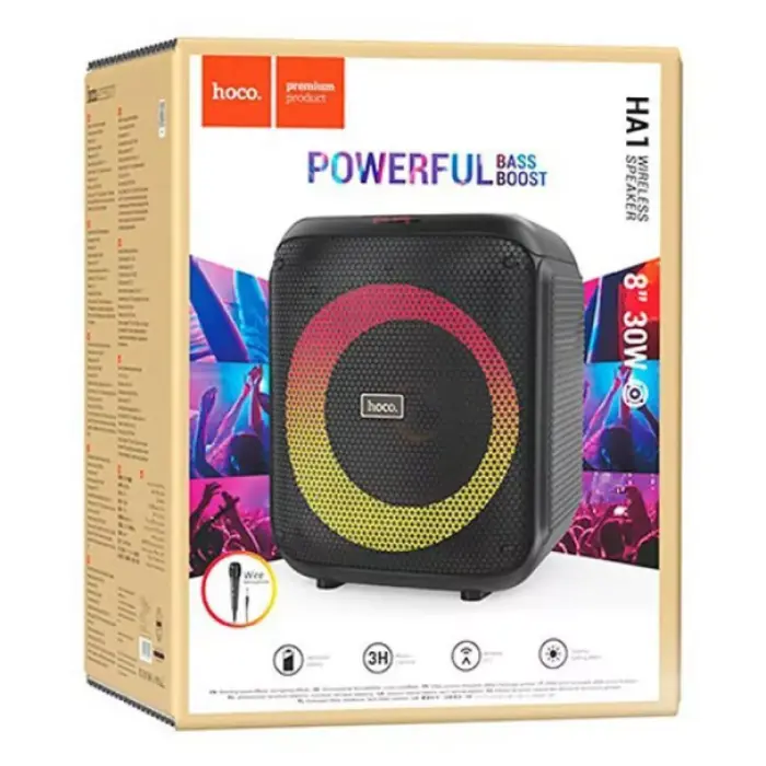 Hoco HA1 Graceful outdoor активно работает в течение 4 часов, без подзарядки и потери мощности. Что позволяет наслаждаться любимой музыкой или устроить громкий вечер с караоке.