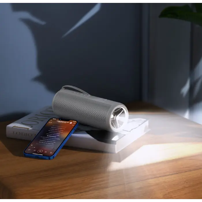 Колонка Hoco HC11 Bora sports відтворює музику з будь-якого пристрою, підключеного через Bluetooth або аудіокабель, а також ваших USB-носіїв і карт пам\'яті. Також ви можете слухати улюблені радіостанції завдяки функції FM. Колонка оснащена вбудованим ліхтариком, особливо зручним під час відпочинку вночі, за містом або на природі. Вбудований акумулятор ємністю 1200 мач забезпечує до 2 годин роботи без підзарядки. Шнурок робить виріб зручним для транспортування.